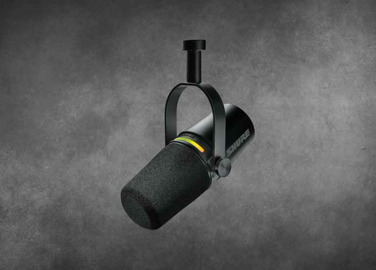 A hybrid USB/XLR dynamic microphone inspired by the legendary SM7B, delivering broadcast-quality voice capture for podcasters and streamers.