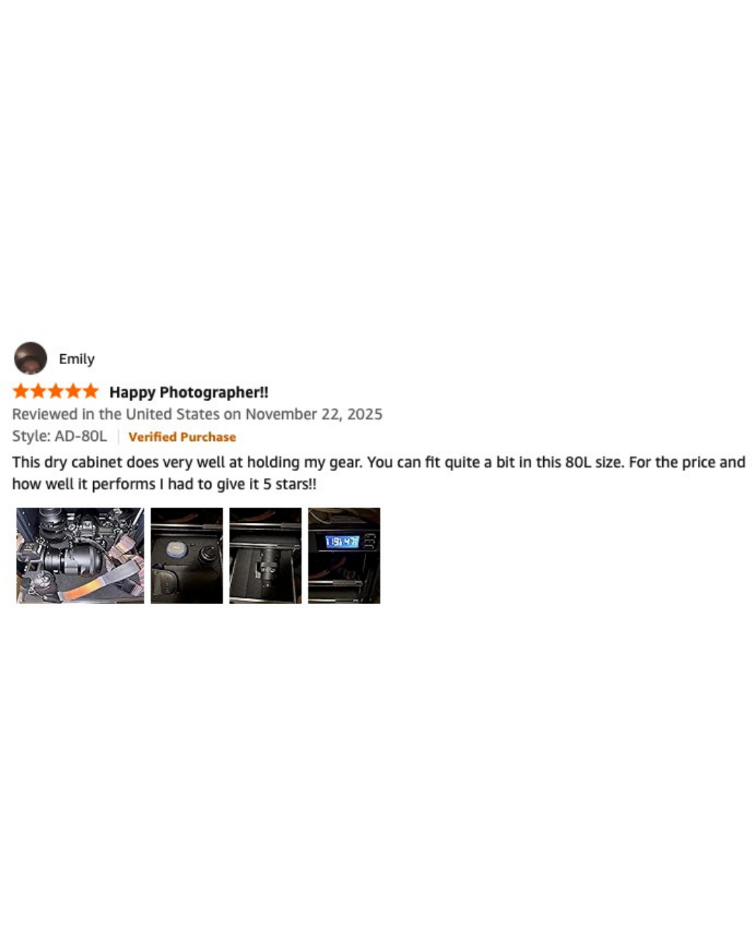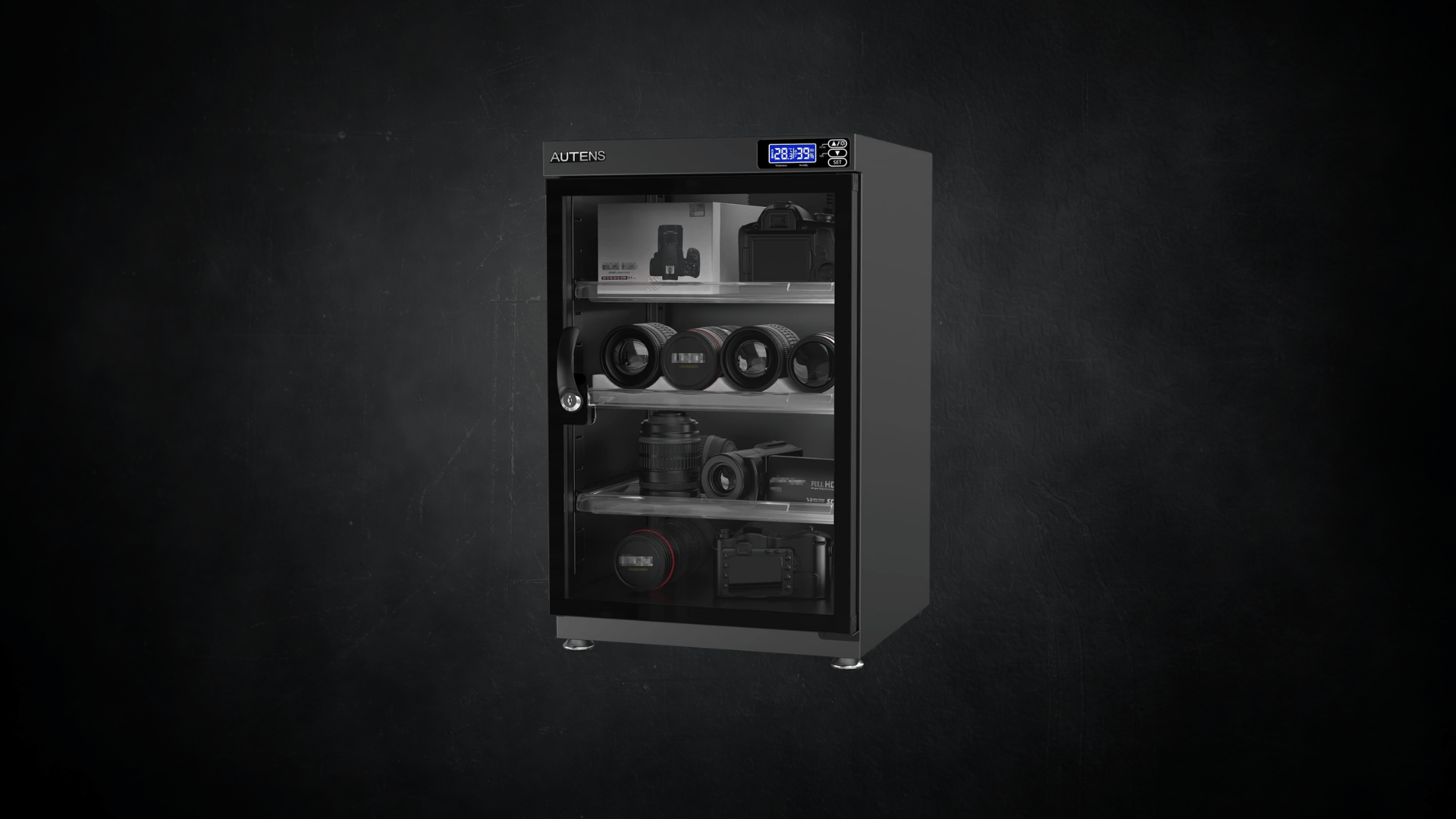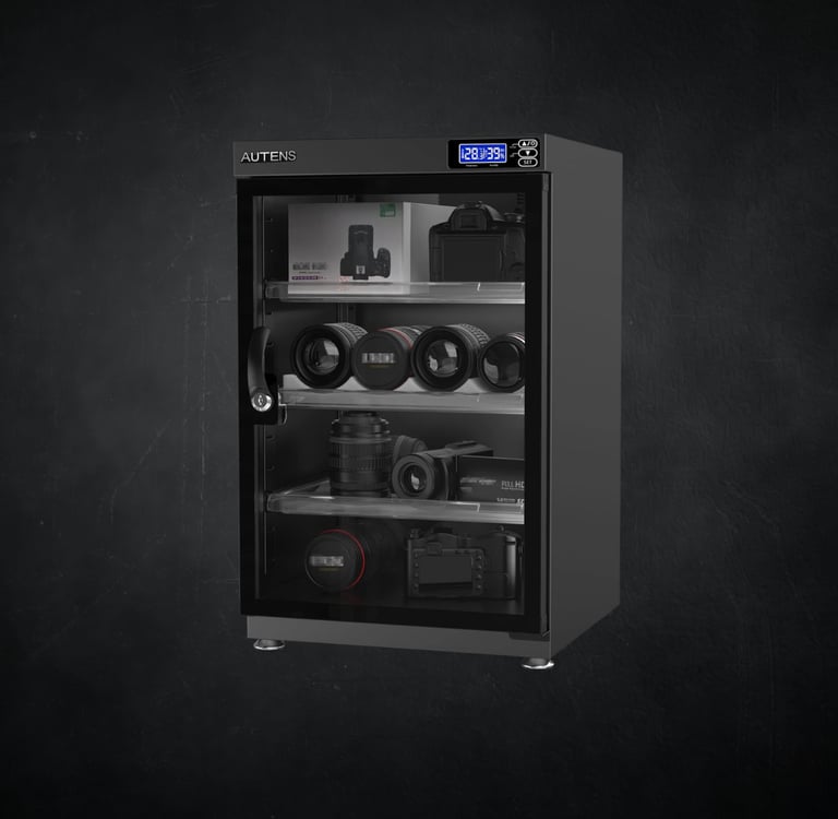 A humidity-controlled dry cabinet that keeps your cameras, lenses, and sensitive electronics safe from moisture, mold, and fungus damage.