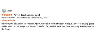 Anyone with a desk microphone who wants their setup to look clean and professional on camera. Essential for visible desk setups.