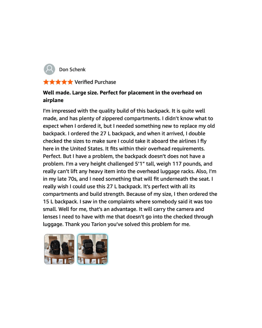 The TARION 15L Camera Backpack delivers premium features at a budget price. It's the bag that proves you don't need to spend $200+ to properly protect and organize your gear.