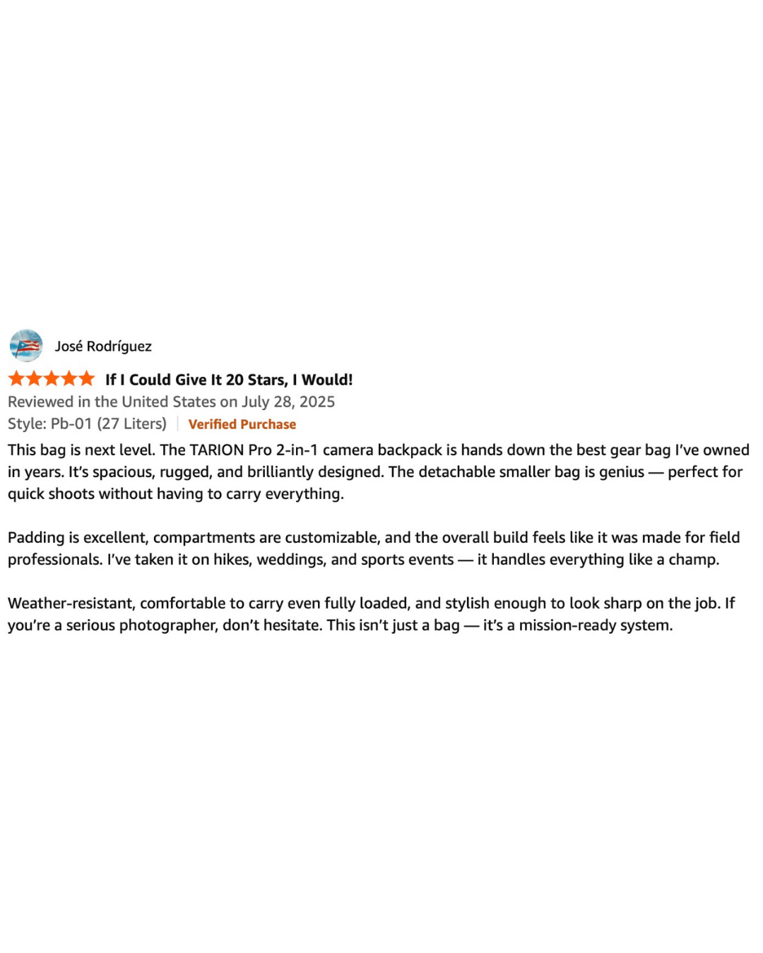 Your gear is an investment. Throwing it in a regular backpack is a risk you can't afford. The TARION 15L Camera Backpack was designed by photographers for photographers — with customizable dividers that adapt to your exact kit, quick side access so you never miss a shot, and a rain cover that protects thousands of dollars of gear from the unexpected. It costs less than a single lens cap replacement. Protect your investment.