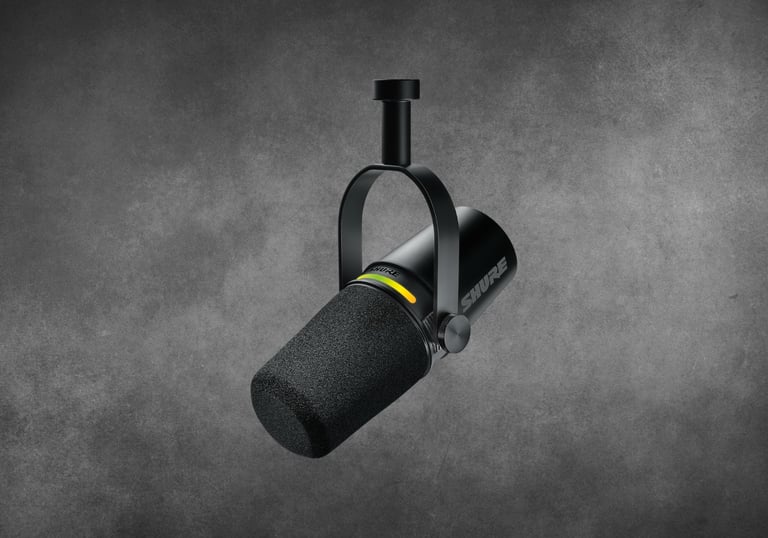 A premium weighted desktop microphone stand with vibration dampening — elegant, stable, and perfectly sized