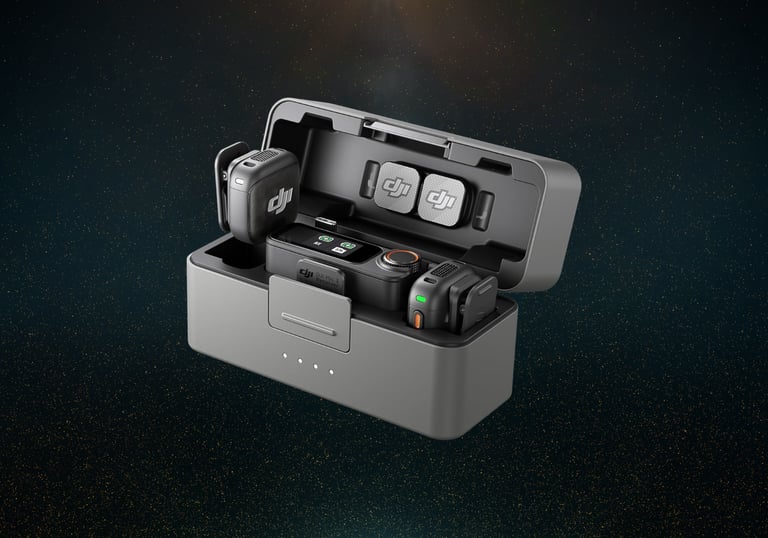An ultra-compact wireless microphone system with noise cancellation and charging case — pro audio that disappears...