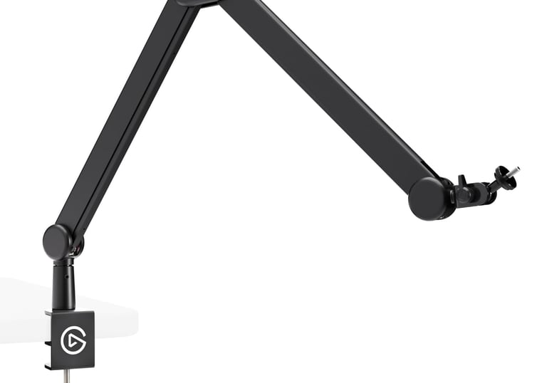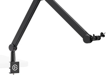 A premium low-profile microphone arm with hidden cable channels and smooth motion — the arm that disappears fro...