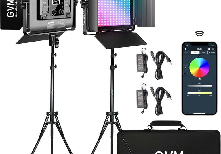 A complete LED lighting kit with stands, diffusers, and bi-color control — everything you need to light a professional...